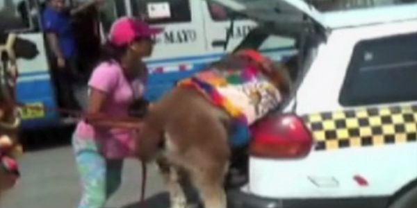 Las siguientes imágenes fueron difundidas a través de las redes sociales y han causado indignación. Se trata de las deplorables condiciones en las que son trasladadas dos llamas en un taxi colectivo en Villa María del Triunfo. Las imágenes fueron enviadas por el ciudadano Ramiro López Huaringa.