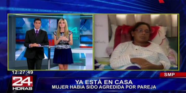 Milagros Rojas de 28 años fue dada de alta del Hospital Daniel Alcides Carrión. Ahora, se encuentra al cuidado de sus padres. Esta madre de dos pequeñas sufrió fractura en mandíbula, diversos cortes en el rostro y lesiones en los ojos.