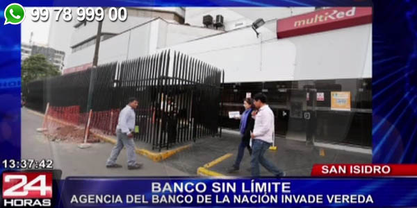 Insólito. Directivos del Banco de la Nación ordenaron cercar la vereda que circunda la sede financiera, ubicada en el cruce de las avenidas Javier Prado y Arequipa, obligando a los personas a movilizarse por la pista.