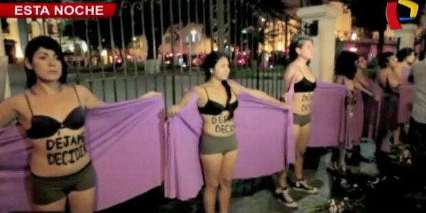 Activistas pro aborto se desnudan frente al Congreso de la República