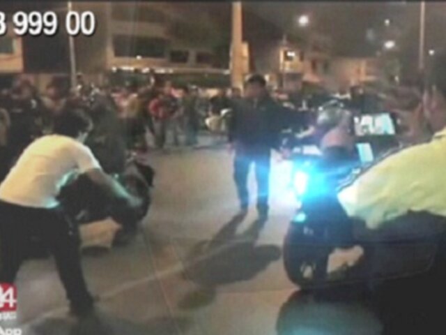 Un televidente de Panamericana captó los piques ilegales de motos que se realizan sin ningún tipo de vigilancia policial en Los Olivos. El preocupado vecino aseguró que esta práctica ilegal es común en la zona y que a pesar de los llamados, las autoridades no actúan. A través del WhatsApp de 24 Horas, otro usuario nos envió imágenes en donde se aprecia a un sujeto colgado de la carga de una camioneta en plena avenida México en La Victoria. Por otro lado, un conductor del ‘Chosicano’ le cerró el paso a un taxi en su intento por ganar pasajeros y le rompió el espejo retrovisor. El taxista alcanzó al vehículo que intentó darse a la fuga y lo cerró para que le pagara los daños. Sin embargo, el chofer de la cúster volvió a intentar la fuga pero los transeúntes le arrojaron de todo e impidieron su huída. Y en Surco, una combi no tuvo reparos en subirse a la vereda para evitar el tráfico en la zona. El hecho se registró en el cruce de Tomás Marzano y Próceres.