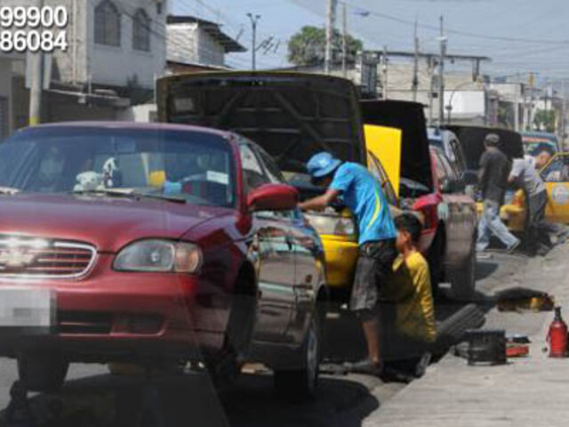Mecánicos arreglan autos en plena calle generando gran congestión vehicular