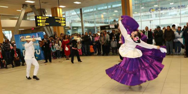 El Gobierno Regional del Callao, con motivo de las celebraciones por Fiestas Patrias, promueve una novedosa iniciativa y recibe a los turistas que llegan al Aeropuerto Internacional Jorge Chávez a ritmo de cajón y marinera. Jóvenes ataviados con trajes, sombreros y pañuelos danzan los ritmos más representativos del país y contagian con su gracia y elegancia a los cientos de viajeros que arriban diariamente.