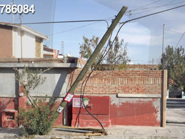 Los moradores indican que el último fin de semana un auto se estrelló contra el poste de cemento, ubicado en la cuadra 9 del Jr. Belisario Flores, dejándolo seriamente dañado y al borde del colapso. Los vecinos piden a las autoridades solucionar este inconveniente para evitar alguna tragedia.