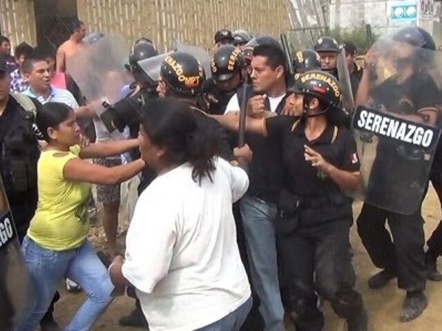 Las calles de San Martín de Porres fueron escenario del violento desalojo de la veterinaria “Virgen del Carmen”. El incidente se produjo luego que cinco hombres y una mujer se enfrentaran a la Policía utilizando piedras, palos, bombas molotov y un balón de gas. Los detenidos serán denunciados por tentativa de homicidio contra los agentes del orden.