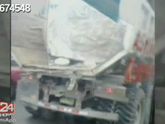 Las siguientes imágenes nos llegan a través del WhatsApp de Panamericana Televisión. Un camión fue captado llevando de manera temeraria una enorme roca en plena avenida Javier Prado. La tolva del vehículo no cuenta con ninguna medida de seguridad, poniendo en riesgo a los demás conductores que transitan por esta vía. Y en Talara, un hombre es trasladado en la parte posterior de una motofurgón que circula a toda velocidad por una peligrosa bajada. El sujeto no mide el peligro en el que está inmerso y se mantiene de pie mientras viaja en el pequeño vehículo. Las imágenes fueron registradas por televidente de 24 Horas.