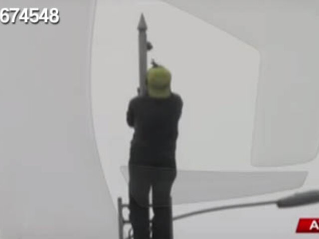El sujeto trepado en una enorme escalera arregla el astil arriesgando su vida. En la parte inferior se encuentra un grupo de policías que conversa y solo mira la temeraria labor del obrero. Recuerde realizar cualquier denuncia al WhatsApp de 24 Horas, agregando el número 930674548 a su lista de contactos.
