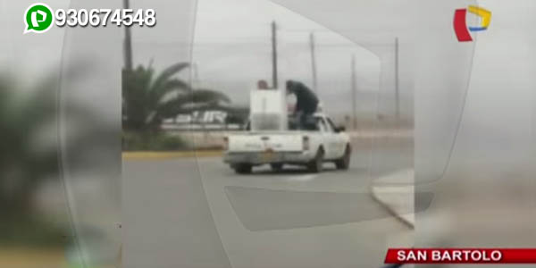 San Bartolo: trasladan refrigerador en la tolva de un patrullero