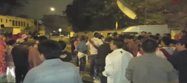 El grupo de hinchas permaneció por varios minutos en el lugar, con la intención de no dejar dormir a los seleccionados de Jorge Sampaoli. Vestidos con polos de la blanquirroja y fuertes cánticos, intentaron recordarle a la 'Roja' que son visita. La Policía llegó al lugar para pedir a estas personas que se retiren del lugar, pues vecinos de la zona habrían expresado su malestar por lo que ocurría.