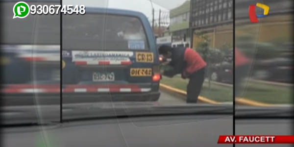 Finalmente, en la avenida Faucett, una combi de la empresa Latinoamericana carga combustible en plena autopista y con el vehículo lleno de pasajeros. En las imágenes se puede apreciar al cobrador llenando el tanque con una galonera.