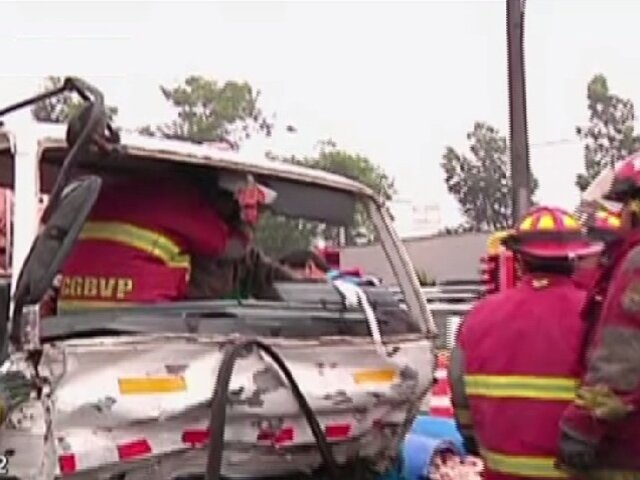 Un camión que trasladaba aproximadamente 15 barriles de sebo de animales se empotró con la parte trasera de un tráiler a la altura de la avenida El Derby, en la Panamericana Sur. Equipo de Bomberos rescató al conductor del carro de placa M4J-791, quien quedó atrapado entre los fierros de la unidad.