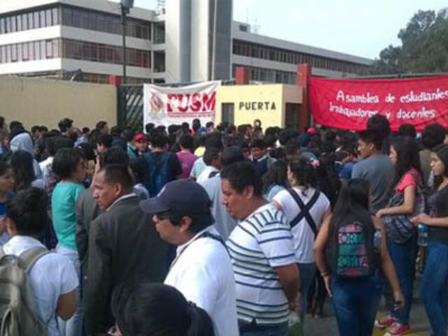 Con los rostros cubiertos, cientos de estudiantes tomaron la Universidad Nacional Mayor de San Marcos (UNMSM) exigiendo la salida de su rector, Pedro Cotillo. Los estudiantes impidieron la entrada de trabajadores administrativos y de autoridades universitarias al centro de estudios.