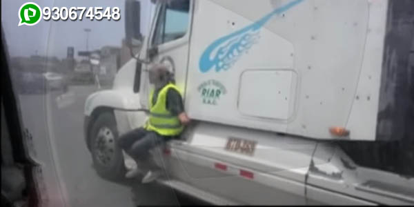 Las imágenes fueron registradas en la avenida Néstor Gambetta, en el Callao, el arriesgado sujeto apenas logra sostenerse en el borde del vehículo. Pese a ser una vía muy vigilada, ninguna autoridad intervino el camión y así evitar un posible accidente. Recuerde realizar cualquier denuncia al Whatsapp de 24 horas, agregando el número 930674548 a su lista de contactos.