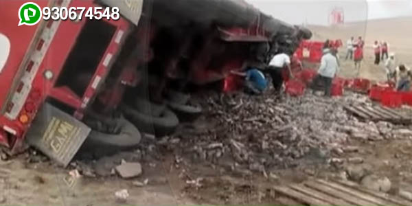 El accidente se registró esta mañana en el kilómetro 55 de la Panamericana Sur. Según testigos, el chofer del pesado vehículo se habría quedado dormido provocando que el camión se salga de la vía y termine volteado. Recuerde realizar cualquier denuncia al Whatsapp de 24 horas, agregando el número 930674548 a su lista de contactos.