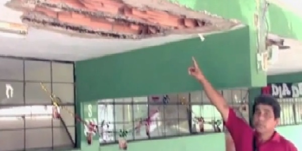 La Institución educativa se encuentra en estado tan calamitoso que un padre pudo sacar un ladrillo de una pared con su mano.