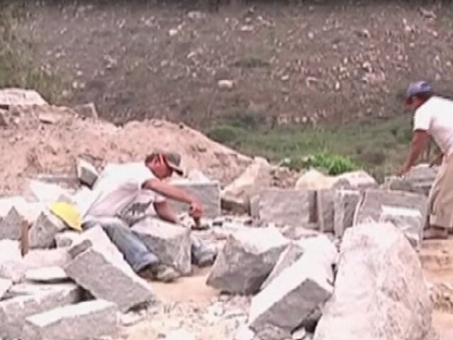 Un equipo de 24 Horas conversó con estos hombres que llevan más de 20 años en el negocio del tallado de roca a mano, cuando cae la lluvia por la quebrada ubicada en el km 64 de la Carretera Central.