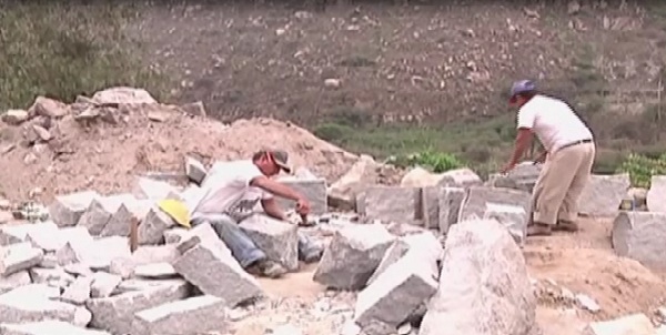 Sujetos aprovechan la caída de rocas por los huaicos para realizar sus trabajos de tallado.