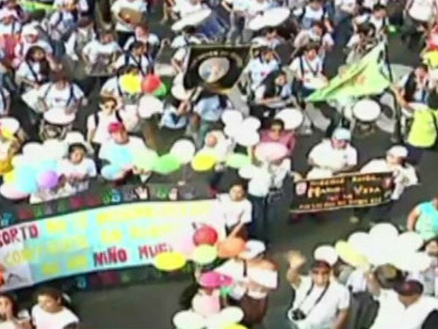 “Si a la vida, no al aborto”, fue el grito entre los asistentes. Juntos a ellos, varias comparsas recorrieron las calles al ritmo de la música. Entre los asistentes se notó presencia de muchos jóvenes colegiales y de parroquias.