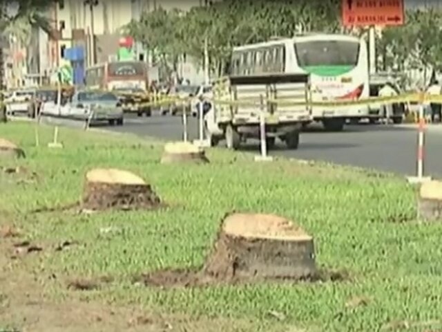 Los municipios de Lima y Los Olivos se acusan mutuamente por la tala indiscriminada de 70 palmeras en la avenidas Las Palmeras.