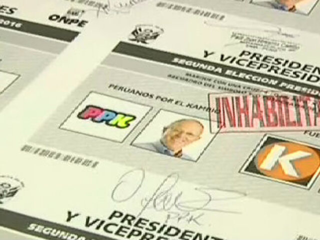 Al lado izquierdo de la cédula se encuentra Pedro Pablo Kuczynski y al derecho, Keiko Fujimori. Junto a cada fotografía aparecen también los símbolos de sus partidos y otros detalles.