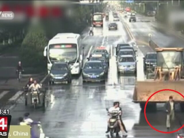 Las siguientes imágenes muestran el momento en que el conductor de una excavadora desató el pánico en una carretera de China y trató de embestir a varios vehículos, motocicletas y transeúntes.