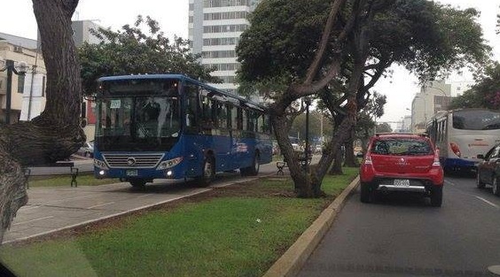 Un bus del Corredor Azul invadió nada menos que parte de la ciclovía de la avenida Arequipa en el distrito de San Isidro. Sí, tal como lo lee: fue una unidad del municipio de Lima la que cometió semejante imprudencia.