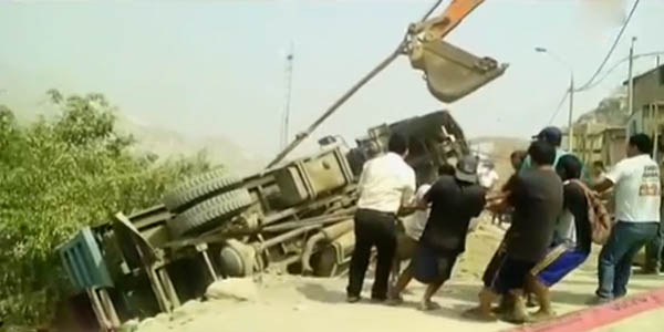 Según las primeras informaciones, el vehículo pesado transportaba materiales de construcción y cayó sobre una vivienda del asentamiento humano Santa María.