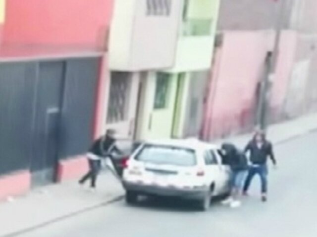 A plena luz del día tres delincuentes aprovecharon la soledad en una de las calles de Barrios Altos para cometer sus fechorías y así despojar de sus pertenencias a una señora que viajaba en un taxi.