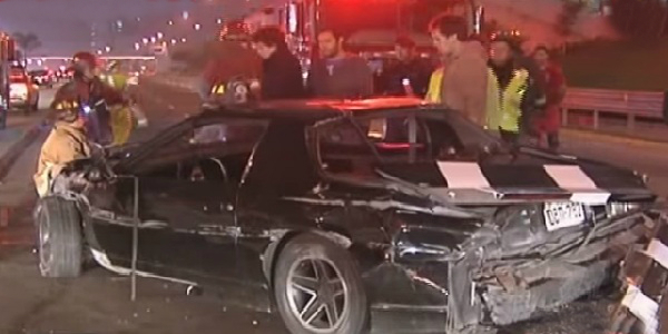 Dos jóvenes chocaron contra las barandas de seguridad de la Vía Expresa. El auto de carrera que manejaban terminó en medio de la pista, dejando herido al copiloto.