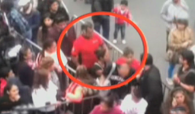 La indignante filmación muestra a la vendedora ambulante intentando vender sus productos al público que hacía cola para ingresar al espectáculo, de pronto el agente le arrebata su mercadería y lo tira al piso. La señora intenta recoger las bolsas pero una agente patea las bolsas.