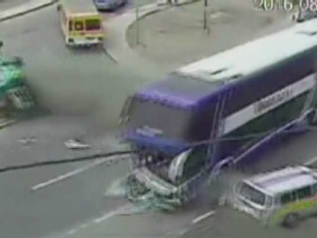 El bus interprovincial venía de Ica con destino a Lima, luego que la luz del semáforo cambiara a rojo, todos los vehículos se detuvieron menos este bus, que terminó impactando contra la parte de posterior de la cúster.