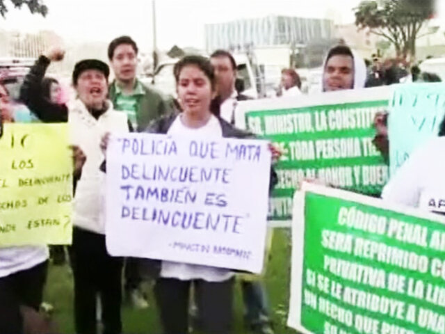 Familiares de los agentes de la Subunidad de Acciones Tácticas (SUAT) de la Policía Nacional y de otras unidades, implicados en la denuncia sobre la supuesta existencia de un 'escuadrón de la muerte', llegaron hasta los exteriores del Ministerio del Interior para protestar en contra del informe presentado por la comisión que realiza las investigaciones.