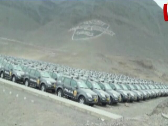 Unos 300 patrulleros nuevos, llegados al país en julio último, se encuentran estacionados en un descampado de la escuela de la Policía Nacional en el distrito de Puente Piedra.