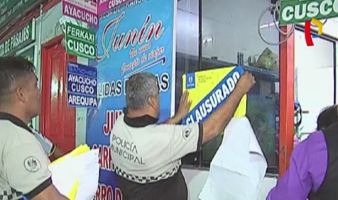 Autoridades informaron que uno de los locales clausurados operaba con la licencia de una empresa pero en su interior funcionaban hasta seis empresas de transporte interprovincial que generaban gran congestión vehicular por el embarque y desembarque de pasajeros.