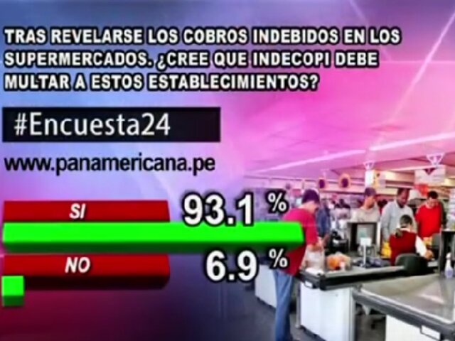 Encuesta 24: 93.1% cree que Indecopi debe multar a supermercados por cobros indebidos