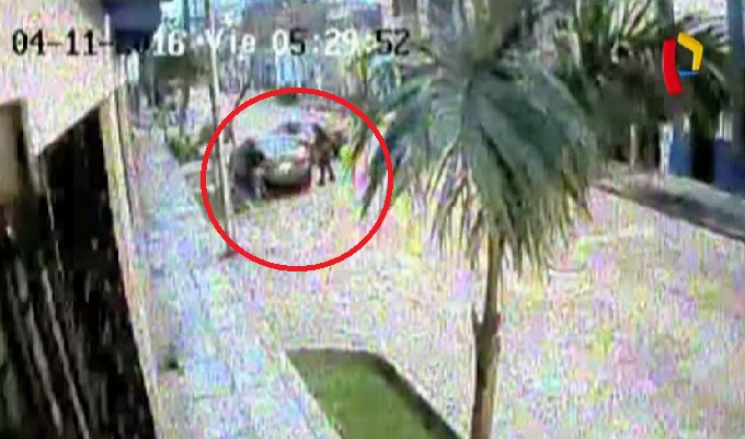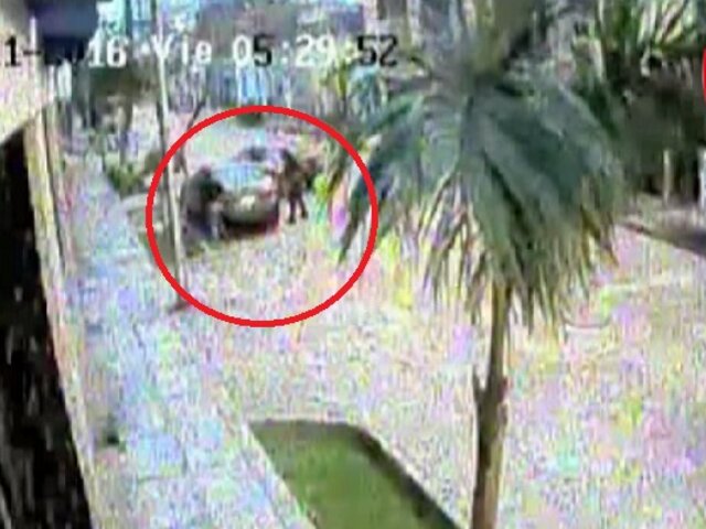 En el video grabado por una cámara de seguridad se observa cómo los dos sujetos se acercan al vehículo y empiezan a forcejear el carro para desactivar la alarma de seguridad para no ser descubiertos. Luego abren las puertas y se apoderan de las autopartes.