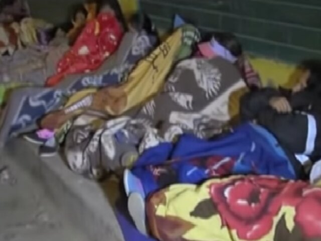 Padres de familia pasaron la noche en la intemperie con colchas y frazadas para poder conseguir una vacante para sus hijos en el Centro Educativo 0163 Néstor Otero en San Juan de Lurigancho.