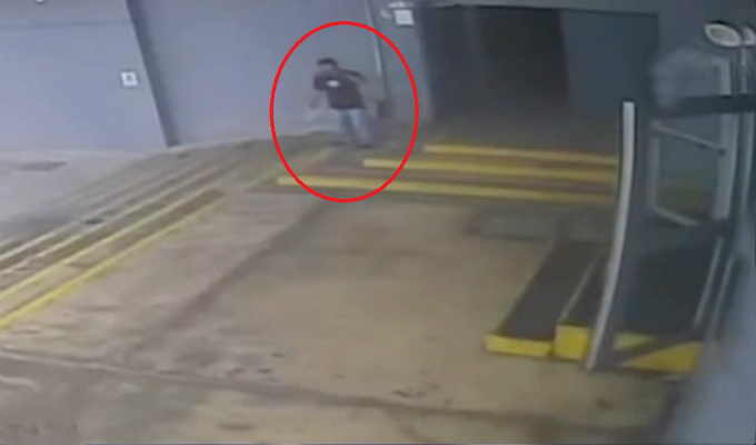 El sujeto fue grabado por las cámaras de seguridad del centro comercial saliendo segundos antes de iniciado el incendio. El hombre sale caminando de la salida del cine y tras percatarse del humo, se retira como si no hubiera ocurrido nada.