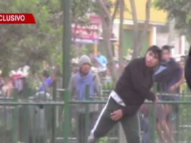 Imágenes captadas por Panamericana Televisión muestran los rostros de los vándalos que causaron destrozos en Huaycán el pasado jueves. Con palos, piedras y bombas caseras, sujetos se enfrentaron a la policía dejando como saldo un fallecido, cerca de 45 heridos y 40 detenidos.