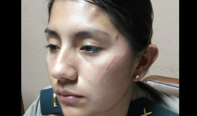 La policía que intervino esta madrugada a una mujer en estado de ebriedad, terminó con lesiones en el rostro y los brazos tras ser agredida por la infractora. El dosaje etílico de la mujer arrojó 1.36 gramos de alcohol por litro de sangre.