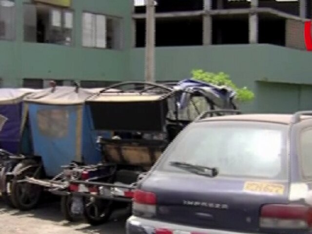 En los exteriores de la Dirincri de El Agustino, existe el mismo problema. La carrocería de un mototaxi reposa sobre el césped pese a ser inservible. Los autos intervenidos son ubicados uno al lado del otro ocupando el espacio público.