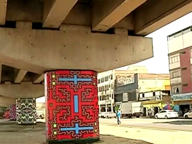 En busca de recuperar los alrededores de la Línea 1 del Metro de Lima, un grupo de artistas shipibos conibos damnificados del incendio en Cantagallo, llenaron de color los cimientos de la cuadra 11 de la avenida Aviación, en La Victoria.