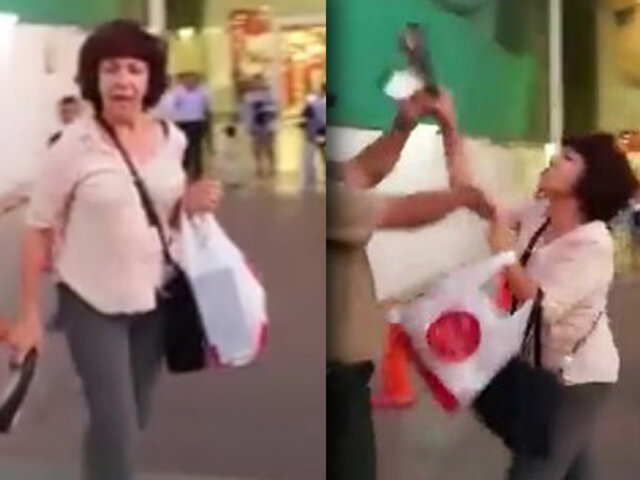En un video difundido a través de las redes sociales se observa a una mujer insultando y agrediendo a un agente de la policía. Esto ocurrió en un conocido supermercado ubicado en el distrito de San Miguel. Según el internauta que publicó las imágenes, la mujer identificada como Alida Margot Rivas Plata Vásquez agredió de una cachetada a una trabajadora de limpieza del local por rosarla de casualidad, por ese motivo la policía llegó hasta el establecimiento para controlar la situación pero la mujer se mostró agresiva en todo momento sin respetar a la autoridad.