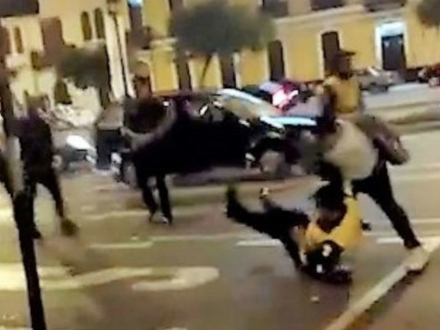 Una grabación muestra la terrible agresión que sufrió un grupo de inspectores en el Cercado de Lima. En el video se observa cómo sujetos vestidos de civil atacan a los trabajadores municipales con patadas y puñetes, al punto de dejarlos tenidos sobre el pavimento. El hecho se registró durante la madrugada a unos metros del Óvalo Bolognesi.