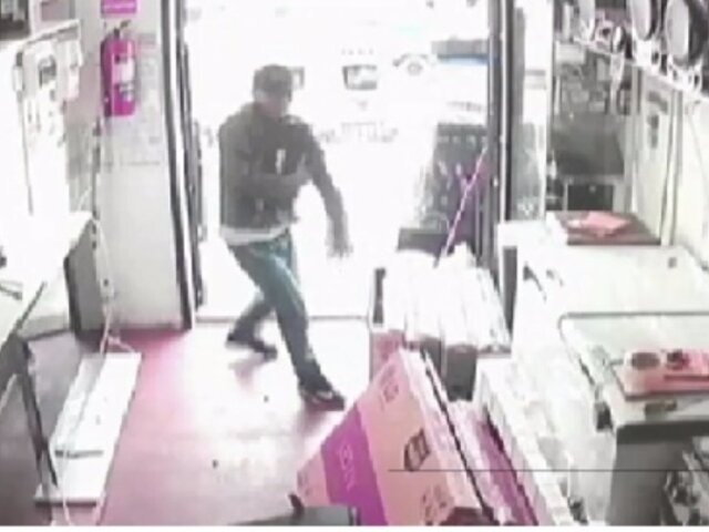 Minutos después del mediodía, delincuentes robaron una tienda de electrodomésticos ubicada en la avenida Velasco Alvarado en Villa El Salvador. El trabajador que se encontraba en el local se enfrentó a los delincuentes sin éxito alguno.
