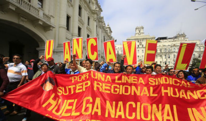La plaza San Martín amaneció cerrada. El resguardo policial impidió que los profesores tomaran nuevamente el centro histórico de Lima, pero eso no ha impedido la movilización y los profesores se dirigieron al estadio Monumental.
