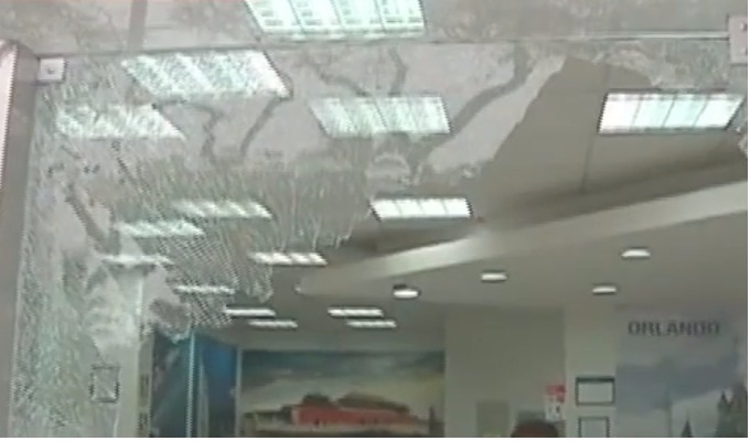 Los sujetos utilizaron una bola de acero para romper la mampara de vidrio e ingresar al establecimiento.