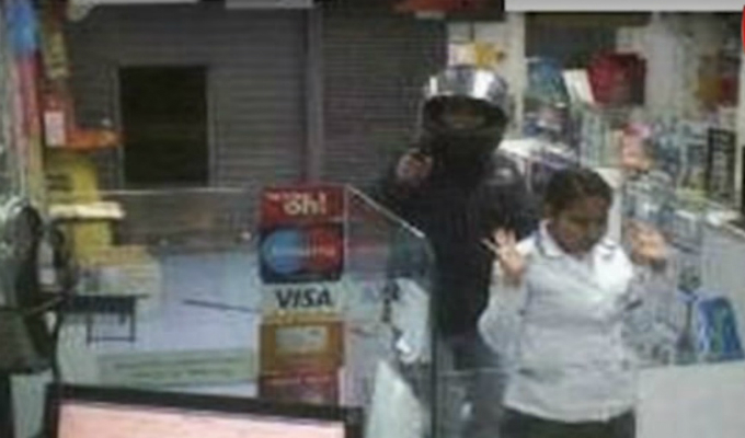 Eran la 11 de la noche cuando un sujeto con un casco de motociclista irrumpe en la farmacia amenazando a una de las trabajadoras y reduciéndola con un arma para luego ubicarla detrás del mostrador junto a su compañera.