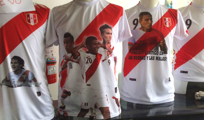 Y es que la reciente suspensión de Paolo Guerrero ha hecho que se confeccionen indumentaria en respaldo a Guerrero. Los comerciantes aseguran que las camisetas con el rostro del 'depredador' son las más vendidas.