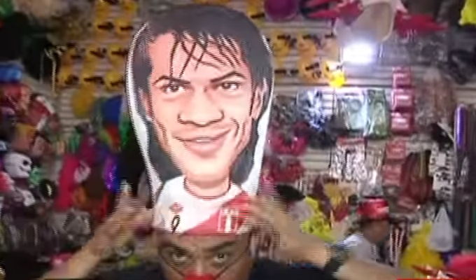 La noticia de que el capitán de la Selección Peruana de Fútbol, Paolo Guerrero, participe en el Mundial Rusia 2018, animó a los comerciantes de las galerías de Mesa Redonda, a ofrecer polos y máscaras con el rostro el jugador.